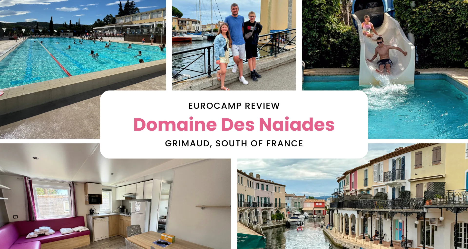 If you’re looking for a fun family holiday to the South of France on a budget – this Eurocamp Holiday Review is all about Domaine des Naiades, a Homair Parcs resort (previously Marvilla Parks) in Grimaud, the French Riviera. I’ve included our experiences, photos, details about the Eurocamp accommodation, what there is to do locally (including Port Grimaud ‘Little Venice’, St Tropez, Monaco and other nearby cities), driving time from Calais, the closest airport and everything else that you need to know. We had such a great time and wish we’d booked a few extra days! We always try to travel on a budget, so if you’re looking to explore the UK and Europe with the kids (in an affordable way!) then have a browse around my blog for loads of money saving tips and budget holiday reviews. And if you have any recommendations, please let me know – you can follow our travels on Instagram too!