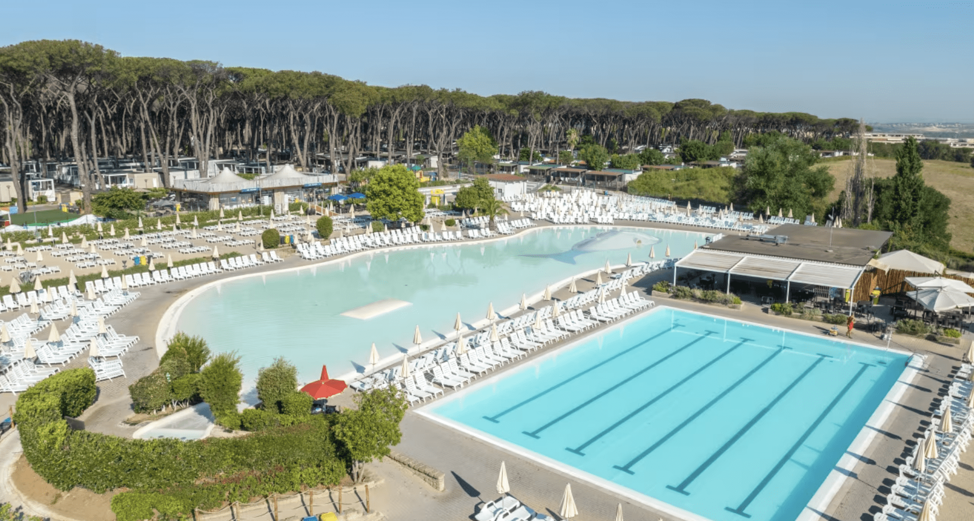 Located in the Castel Fusano Nature Reserve, Village Roma Capitol is another excellent holiday park for families looking for an affordable Eurocamp base near Rome. A smaller campsite, this one is a great option if you’re looking for a quieter getaway – offering a peaceful retreat after a day of sightseeing. Having said that, it still boasts a large pool complex with three swimming pools and a spa area – so there’s plenty of fun to be had for the kids. The park also offers a kids’ club with sports facilities, themed parties and treasure hunts, and it’s just a few minutes drive from the beach.